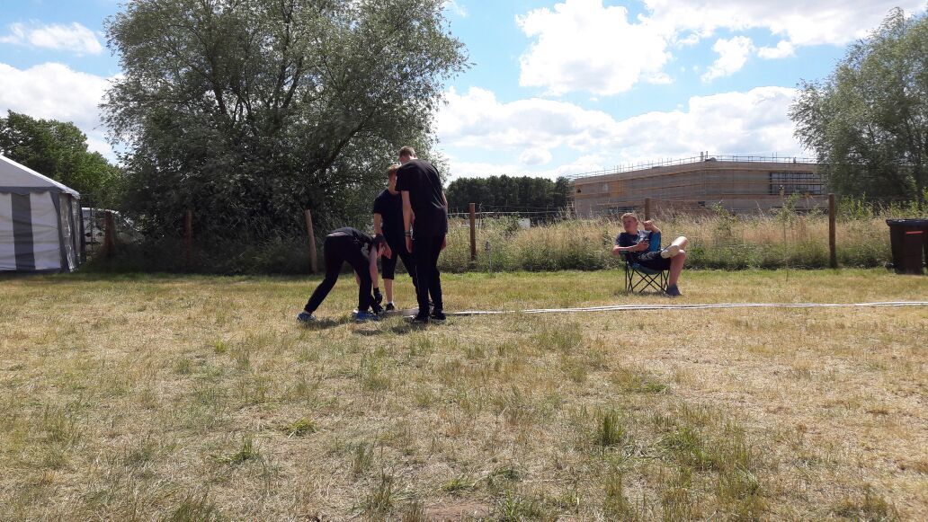 Mögen die Technikspiele beginnen! Bereits zwei Tage vor der offiziellen Eröffnung regt sich etwas auf dem Gelände der KGS Neustadt. Die IuK der Freiwilligen Neustadt ist bereits auf dem Gelände und installiert mehrere Kilometer Kabel für die Beschallung.